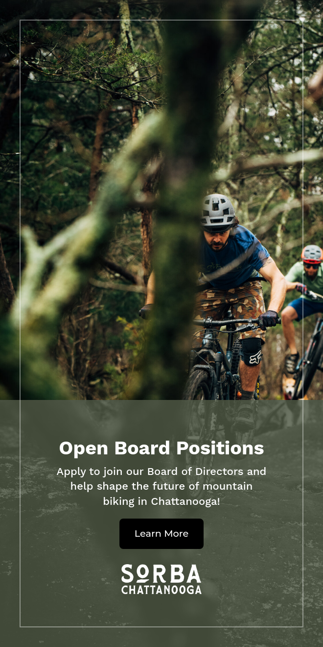 SORBA Chattanooga is seeking passionate individuals to join our volunteer Board of Directors. Since 2003, SORBA Chattanooga, a 501(c)(3) nonprofit, has been committed to expanding and maintaining trail access for mountain bikers in the greater Chattanooga area. What began with just 7 miles of trails grew into the ambitious Singletrack Mind Initiative, aiming for 100 miles. By the end of 2023, we proudly exceeded that goal, reaching an impressive 167 miles of mountain bike-accessible trails within 30 minutes of downtown Chattanooga.